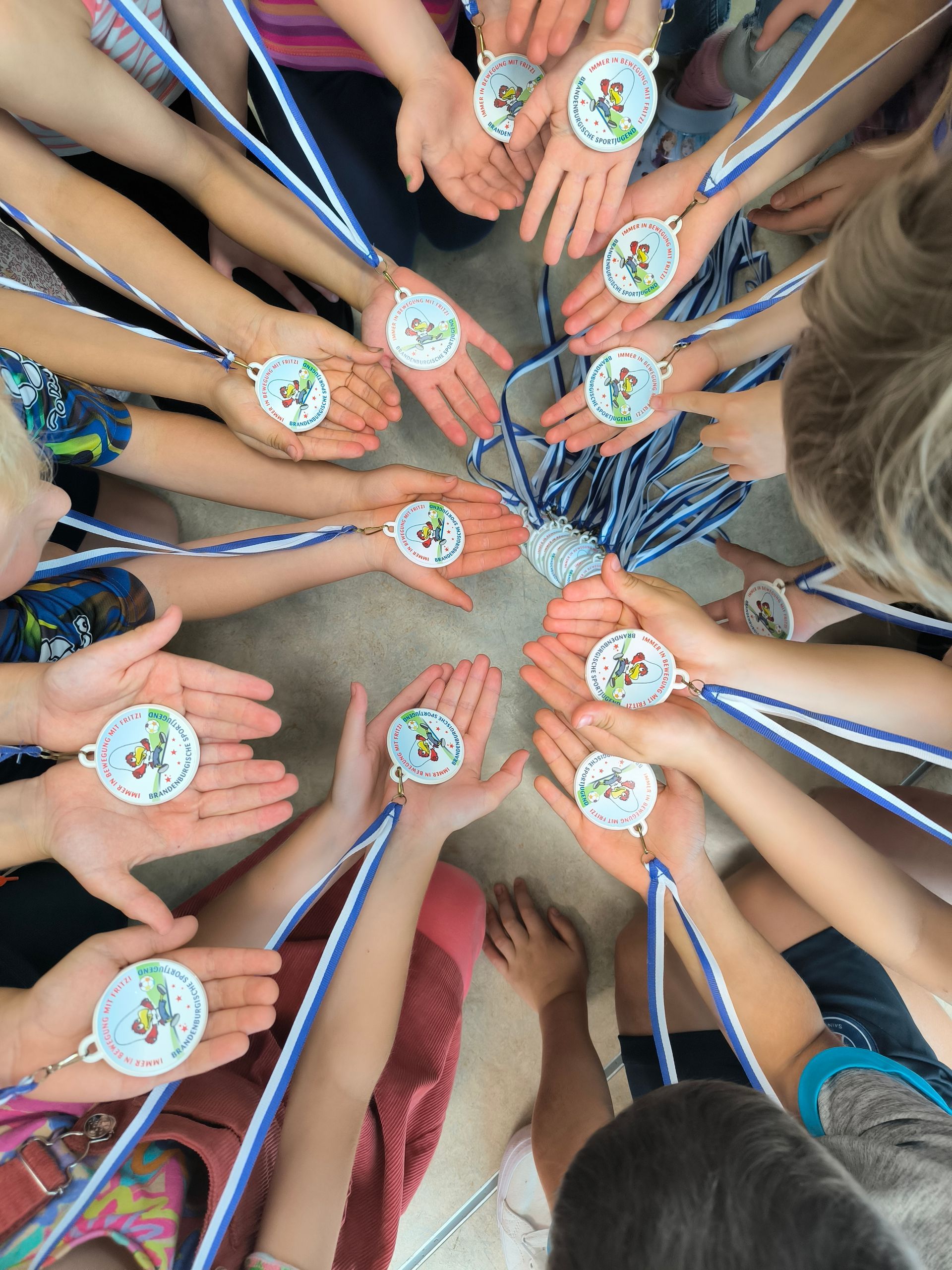 Zum ersten Mal in der Geschichte der Kita Rundbau e.V. fand am 12.09.2025 ein Sportfest für Klein & Groß statt. Dank dem Kreissportbund, der uns das Sportmobil zur Verfügung stellte, konnten wir unterschiedlichste Parcours und Stationen aufbauen. Auch der FSV 63 Luckenwalde beteiligte sich mit einer „Fußball Station“ an unserem Sportfest. Eltern und Kinder konnten gemeinsam 6 Stationen ablaufen, an denen sie sich einen Stempel holen konnten. Am Ende gab es für jedes Kind eine „Jolinchen Sportmedaille“. Auf unserem Buffett-Tisch gab es einen Versorgungs-Zug der AOK mit gesunden Sachen, u.a. Bananen, Äpfel und Weintrauben sowie gesunde Getränke wie Wasser, Tee & Karottensaft. Das Sportfest wurde sehr gut besucht, war rundum gelungen, hat uns allen Spaß gemacht und uns FIT ins Wochenende starten lassen.