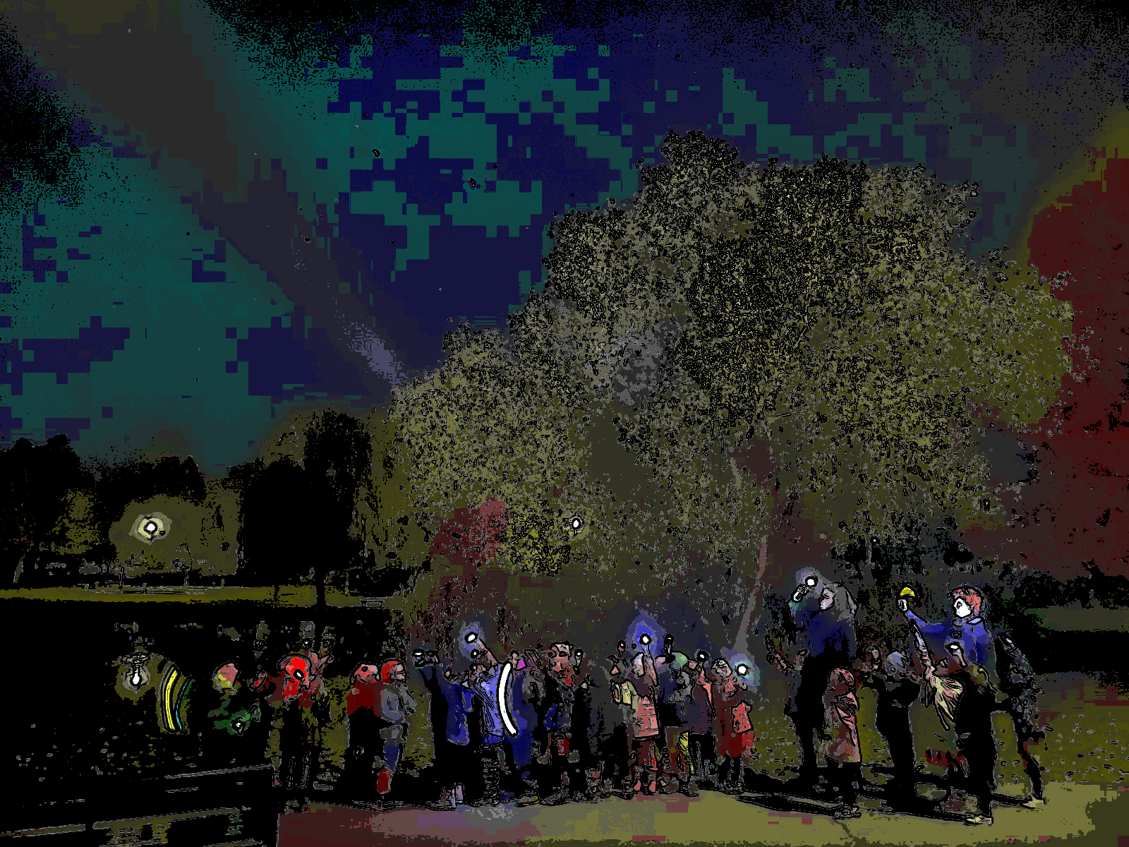Um 18 Uhr klingelte endlich der Pizzalieferant und wir konnten uns unsere leckere Pizza, an einer langen Tafel, schmecken lassen. Danach machten wir eine Taschenlampenwanderung durch den Park am Weichpfuhl. Alle dunklen Ecken und Bäume wurden angestrahlt. Das war richtig schön, aber auch ein wenig gruselig.